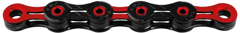 Die super leichte X10 DLC 10-fach Kette von KMC ohne Laufrichtungsabhängigkeit und einer Diamond Like Coating Oberflächenbeschichtung für 10-fach Schaltsysteme.